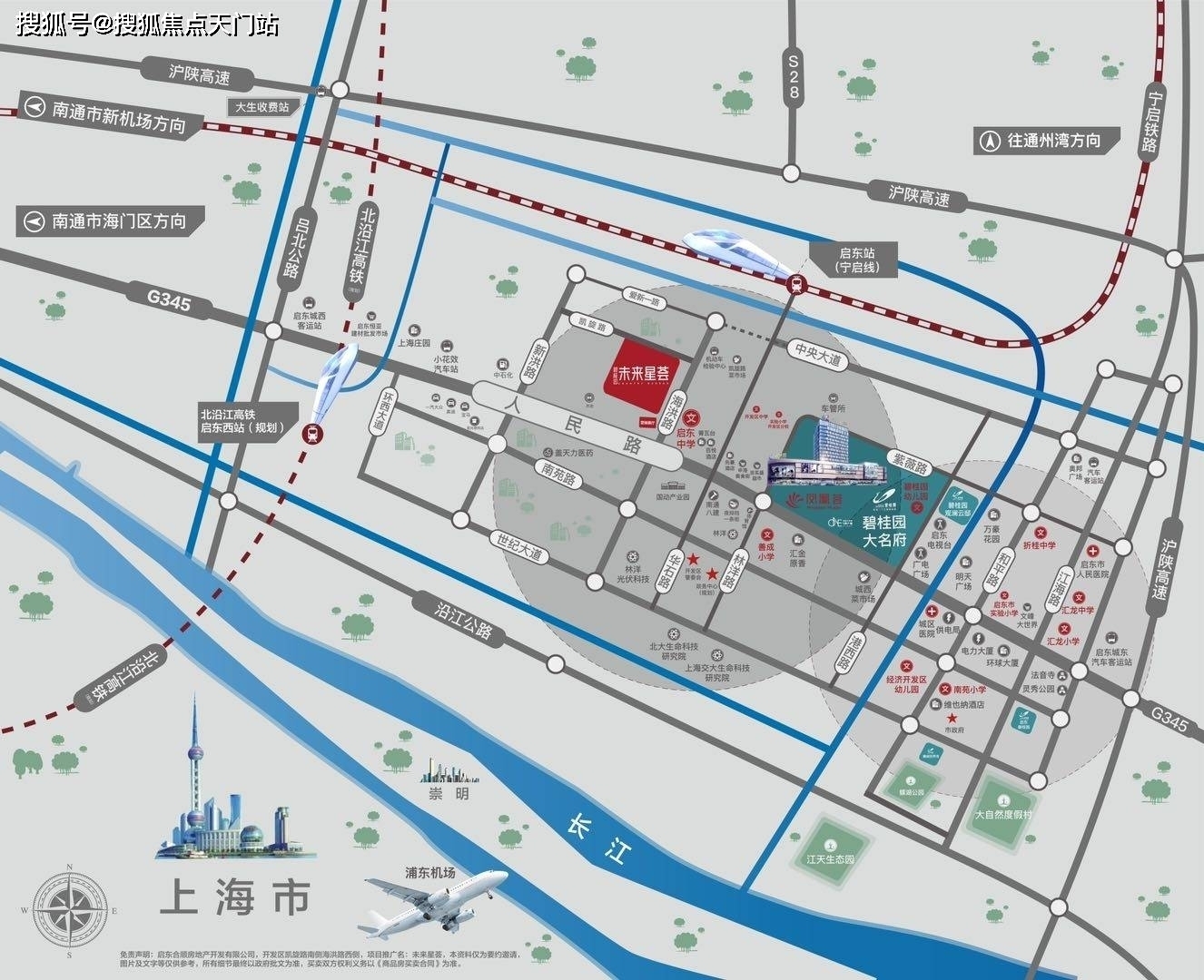 毗邻启东西站(北沿江高铁规划中)、启东站(宁启动车),两大城市战略要塞