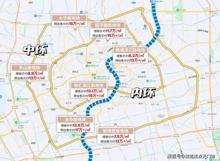 当然,还有核心城区: 约12.6-13万楼板价的徐汇滨江、溢价率 约38.2%的临平路、 溢价率约40%+装修上限的新杨思...