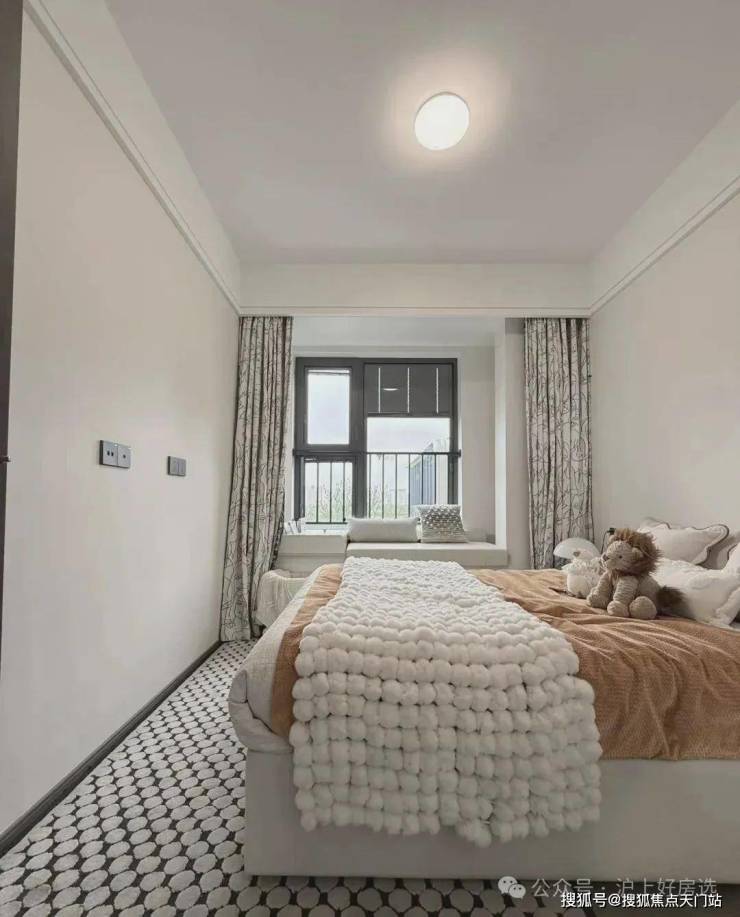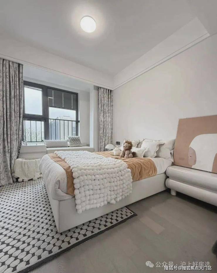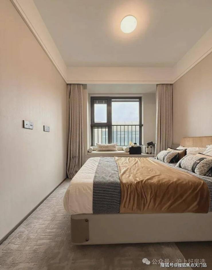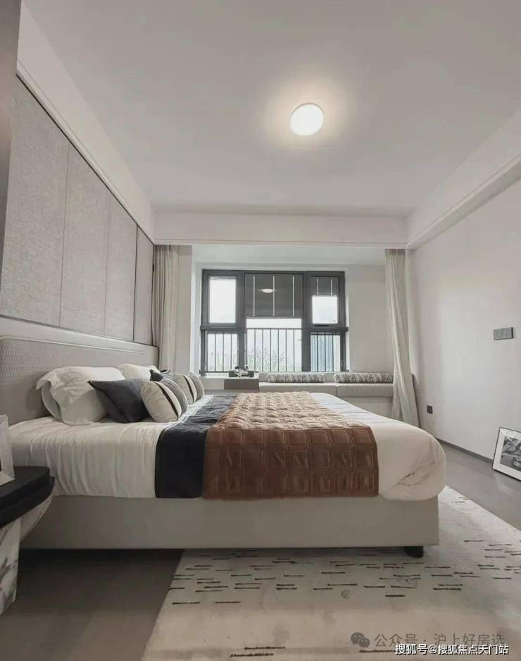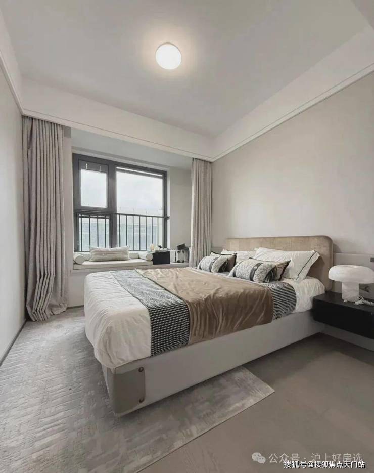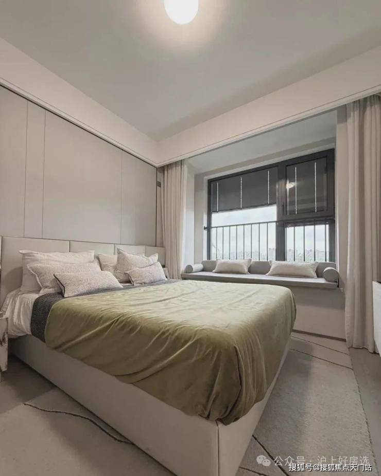主卧床背景墙进行了软包处理,省去了业主未来二次装修的时间、精力跟成本,更好的给业主一个舒适且高颜值的家。