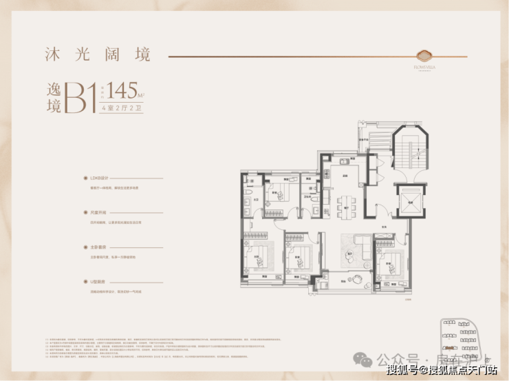 户型特点:4开间朝南,LDK一体化设计,南北通透。客厅面宽达4.3米,外接4.8米长阳台,采光通风俱佳。主卧带270°转角飘窗,主卫也有飘窗赠送。全屋飘窗设计,独立电梯厅,私密性与尊享感强。