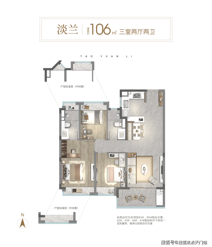 ✔建面约106㎡做到了真三房,客厅面宽达到约3.45米,开放式可视厨房设计,搭配南向大面积阳台,打造开阔的一体化家庭公共活动空间,整体居住体验明亮开阔。
