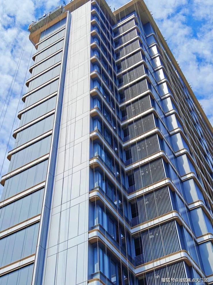 项目外立面采用三玻两腔双LOW-E系统化外窗与精致的铝板细节相结合,融合金属装饰与玻璃镜面的材质美感。