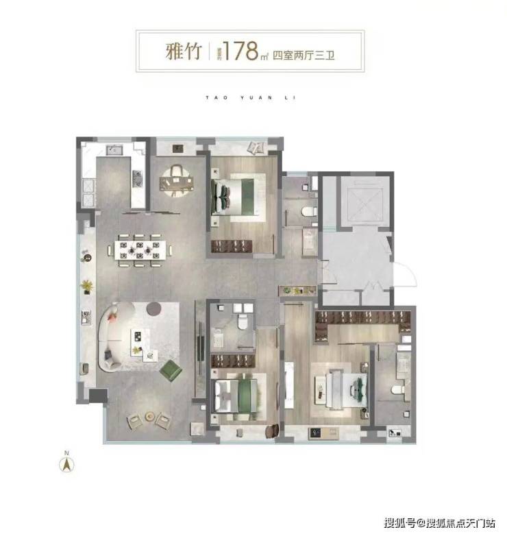 还有建面约175-178㎡4房3卫终改户型,总价1600万上下。内环一套130㎡4房紧凑户型的价格,在中环桃源里可彻底一步到位,不仅每个功能间从紧凑→舒适,还多一个卫生间,二胎家庭/多代同堂家庭生活更从容。