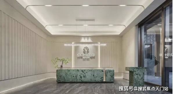 大堂接待台选用产自意大利山脉的宝格绿奢石一体打造而成。