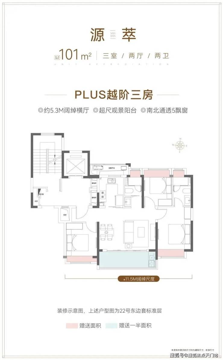 首先,它在3开间朝南的基础上,新开发了0.5,南向约5.3米面宽横厅设计,外接宽景阳台,意味着更大的采光面、更强的通透性、更舒适的居住体验。