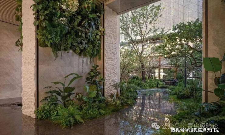 藤蔓沿墙垂落,水流自然流入,花草在架空层间摇曳生姿,使这一开放场域成为生机盎然的灵动空间。