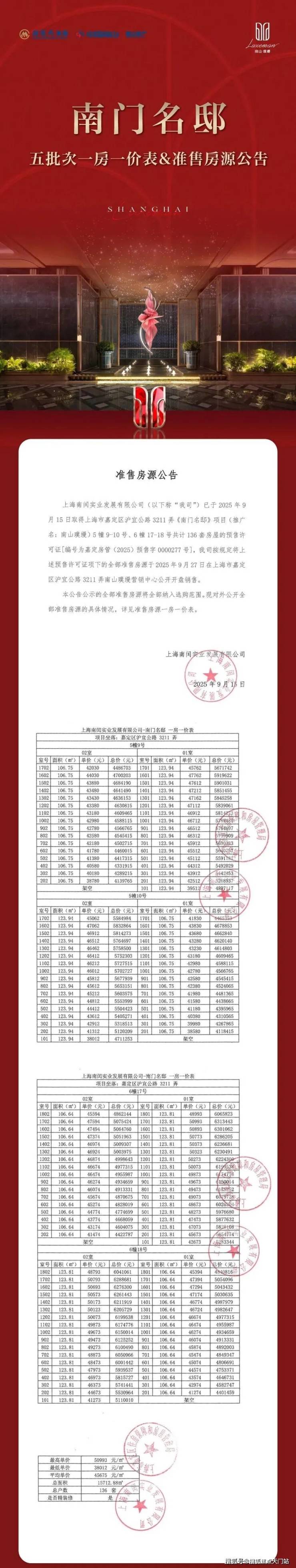 上期一房一价表