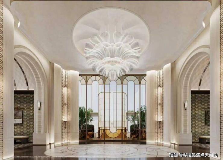 闵行第一个约4米高墙、约350米城市华墙勾勒社区恢弘界面,约70米星级大门以贝金米黄石材、玉兰花雕塑点睛,透光云石悬于门厅,勾勒出媲美半岛酒店的归家门面。