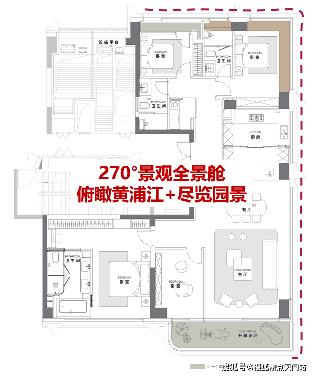 视野:全上海唯一拥有60平米的S湾私人会客厅,仅用5根外置支撑270°超级无界平层结构。