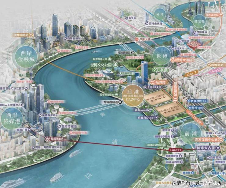 商业方面,项目北有世博天地,南有前滩太古里,对岸还有西岸梦中心和西岸金融城,随便一个都是全球城市顶流商圈的级别。