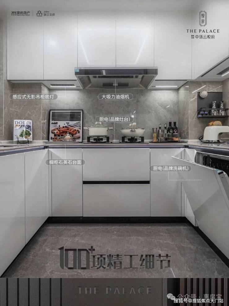 在户型的生活动线设计方面,象屿也极尽巧思,如在厨房采用U型设计动线 ,让住户一个转身就完成洗、切、配、烧四个步骤,省时省力;同时配备西门子品牌脱排、灶具、洗碗机三件套,以及嵌入式冰箱 , 方便了居家生活……