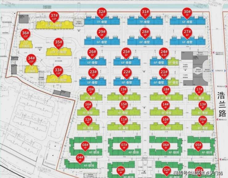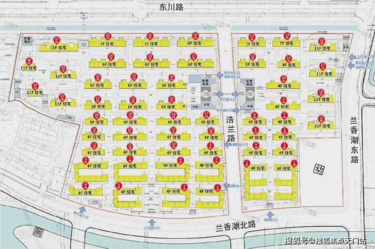 03-04地块:东至兰香湖东路,南至兰香湖北路,西至浩兰路,北至东川路, 土地用途普通商品房,容积率1.01;由4幢11F高层住宅、14幢4-7F多层住宅以及若干社区配套用房组成,共计规划约342套可售住宅;