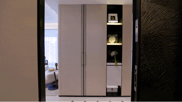 收纳柜可容纳全家四季鞋履、行李箱、婴儿车、滑板等,彻底解决玄关杂乱痛点,同时化身快递拆包区、宠物清洁站,约8-10㎡灵活空间甚至可改造为消毒区、临时会客区,实现“一厅多用”。