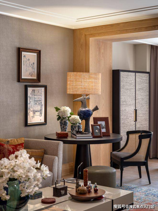 客厅,也是一处流动的空间,通过“自由灵活的组合”营造不拘束的社交空间,家具摆放,连而不挡,分而不隔。满目吸睛的艺术品,错落布置的家具,丰富着空间的视觉层次。