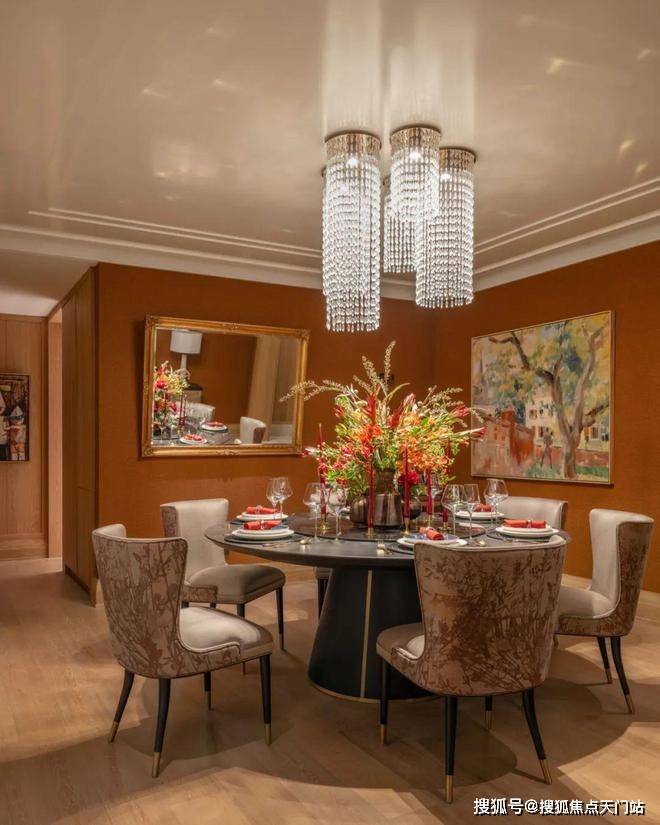 光线,是空间的灵魂。为了雕琢一间光感餐厅,设计师特别选用亮面漆吊顶与整面白色高光烤漆墙板增加光反射,为空间勾勒金灿质感的轮廓。即便在阴天,依旧能在餐厅里感受到近似午后阳光的温暖气息。