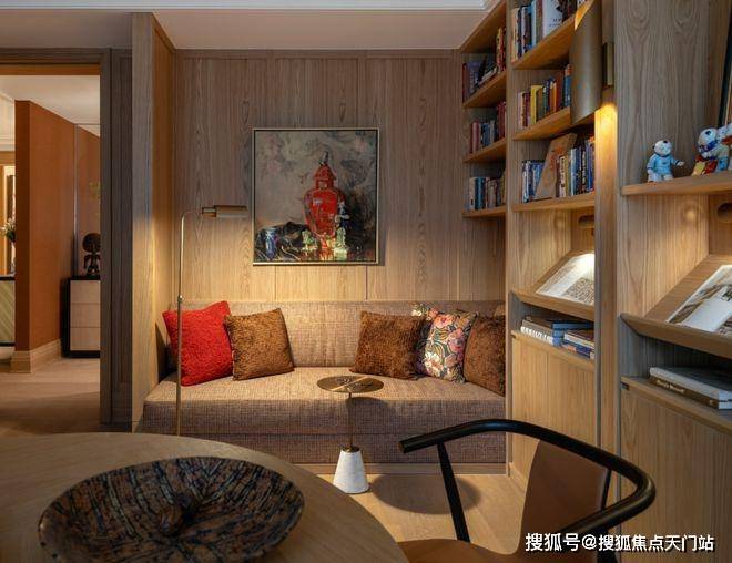 可坐可卧的软塌,让书房升级为舒适安逸的精神领地。一杯咖啡,一本好书,一张黑胶,消磨一段悠闲的午后时光。