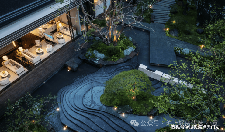 围绕约300㎡的镜面水展开,利用高差,呈现一处藏于下沉花园的东方隐奢秘境