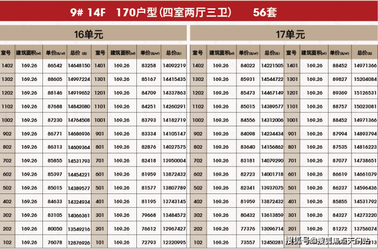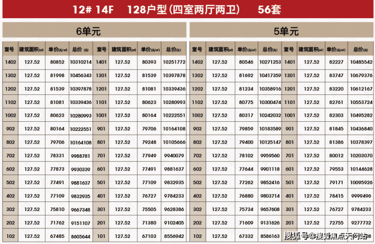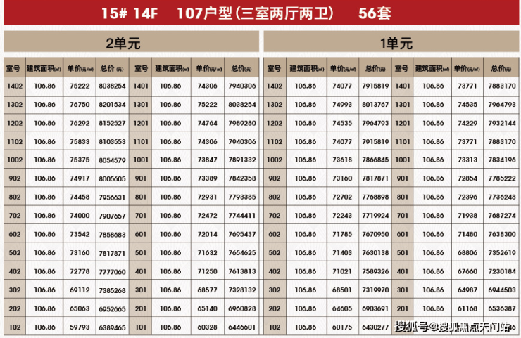 附一房一价表: