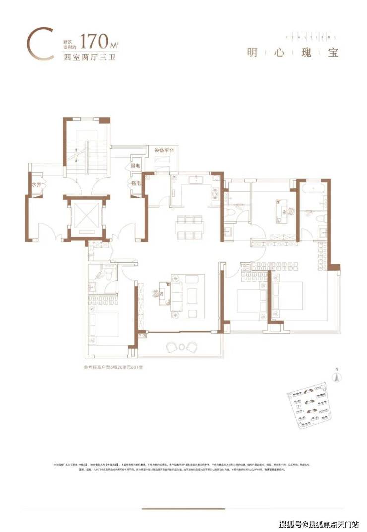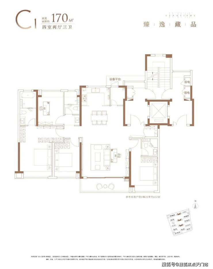 3)建面约170㎡四房两厅三卫——尺度感的王者