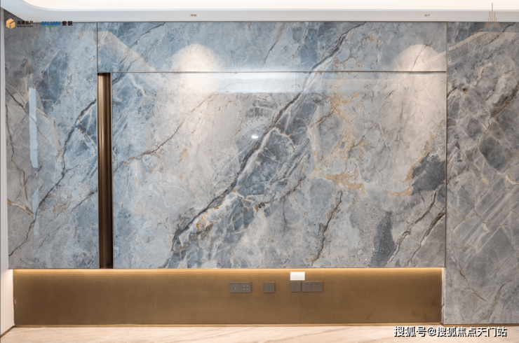 客厅巨幅背景墙, 大理石花纹做到了方向上的统一, 这对施工品质的要求非常高。