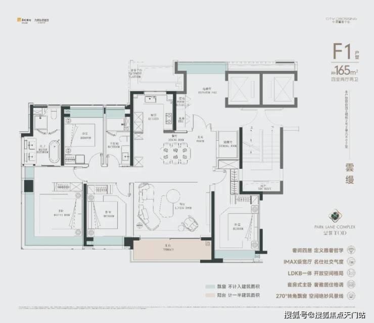 建面约165㎡的“公园头排全景舱”,以 类一梯一户 的尊崇仪式感、 四开间朝南 的极致采光、 LDKB一体化+IMAX级宽厅 的创新布局,打破了传统空间的界限。 超大阳台、全屋飘窗 带来了 约270°环幕视野 ,将公园盛景尽收眼底。 主卫双台盆、N+1百变空间 等设计,更是赋予了生活无限的可能与从容。