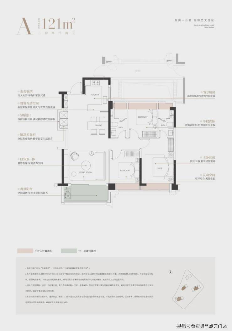 还有有更多的收纳细节,比如建面约121户型,步入玄关有约6米长的交付空间;
