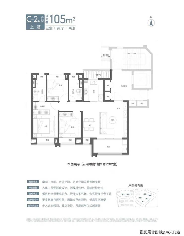 首先是建面约105㎡3房边套,飞机户型,客餐厅阳台厨房一线联通,南北通透。
