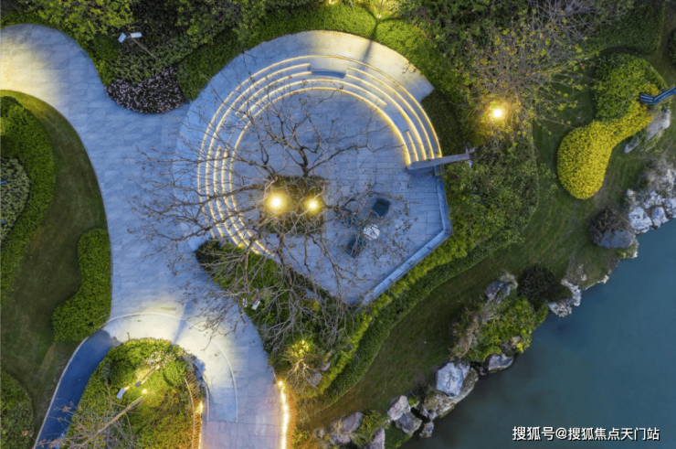 第一,项目由两条天然水系穿流而过,形成三座天然“岛屿社区”,开发商在三座“岛屿”设置不同主题,并铺陈丰富的景观节点。