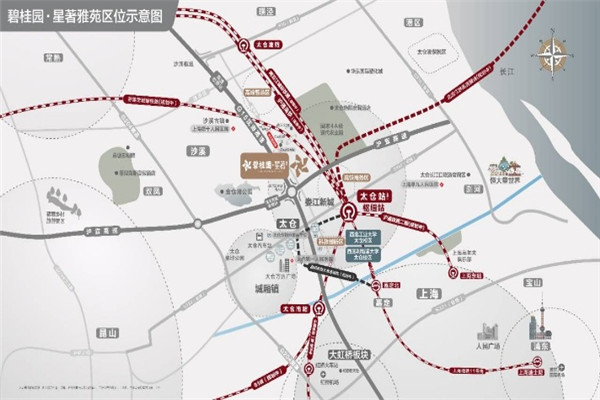 高铁:项目距离太仓高铁站仅4.5KM,高铁20分钟可到达宝山嘉定,30分钟可到达大虹桥商圈,“工作在上海,居住在太仓”将成为一种潮流。