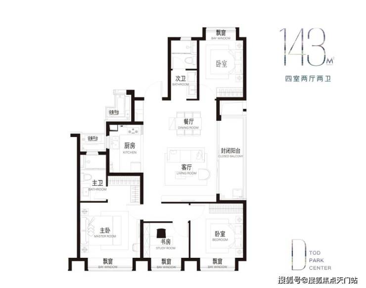 建面约143㎡4房:全能景观边厅大宅!