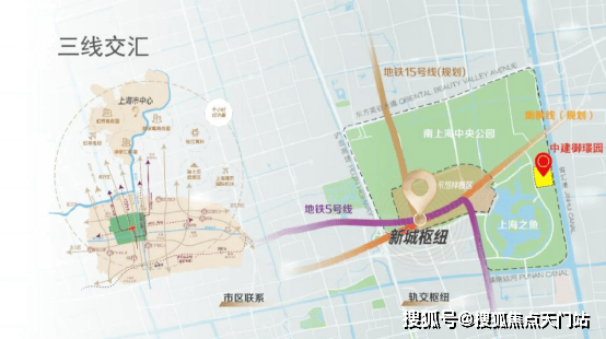 立体交通:目前已开通的地铁5号线无缝衔接1号线通达徐家汇、人民广场;5号线与正在建设中的15号南延伸线及南枫线将均将汇聚于项目西北侧的望园路枢纽。