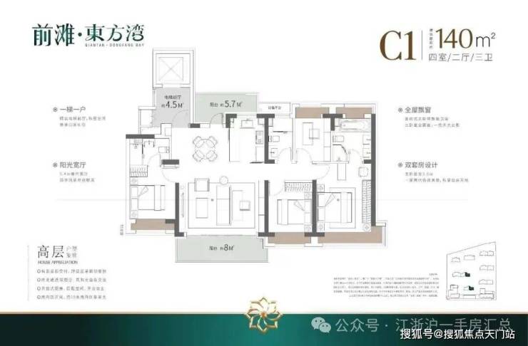 如果有进阶改善置业需求的客户,可以选择建面约140/175㎡4房2厅3卫!