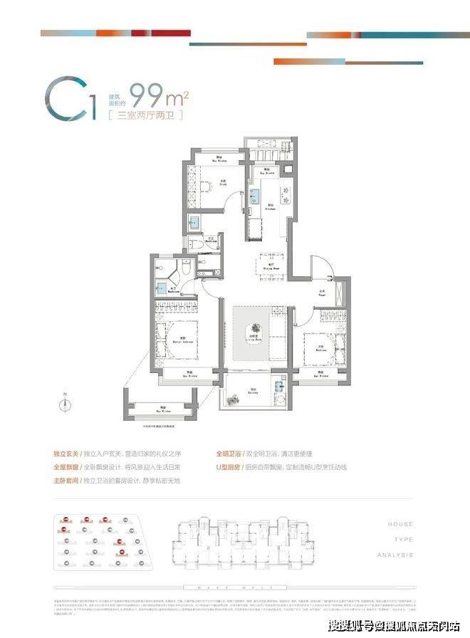当然,还有 三开间朝南、全卧室带飘窗以及卫生间干湿分离等等细节都有配备。
