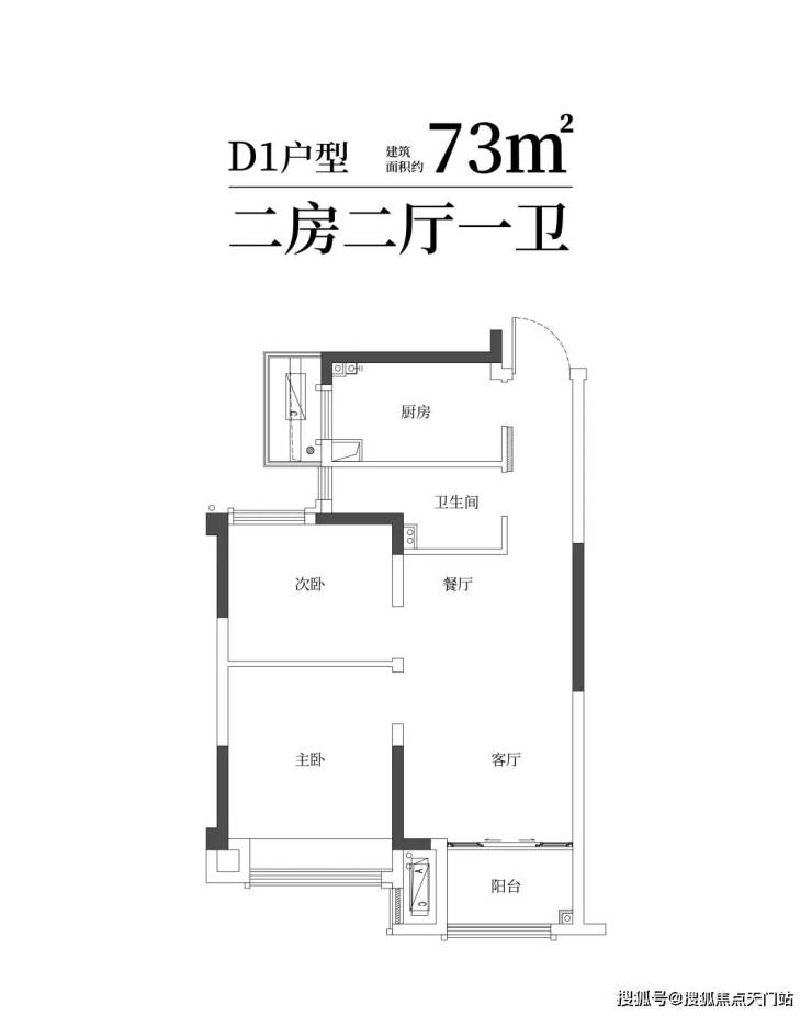 建筑面积约73㎡舒适两房一卫,年轻家庭的向往;