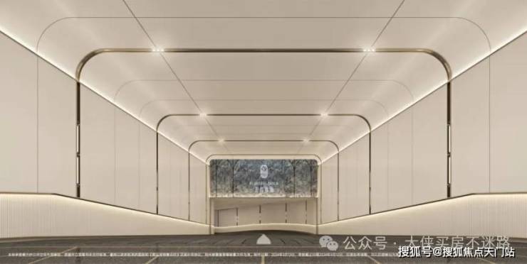 招商臻境,车行入口同样花了极大的心思进行雕琢。相比较市场普通的墙面漆,整个入库车道采用了难得一见的全铝板吊顶与通铺,配合追光式的灯带设计,车辆缓缓驶入,铝板的高级质感与柔和追光的仪式感一点点打开。