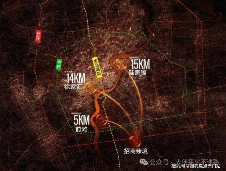 而以前滩、世博为中心,画三个直线约5-7km的生活圈,招商臻境是唯一一个约500万起的新房,而其他的选择,总价起码千万起。