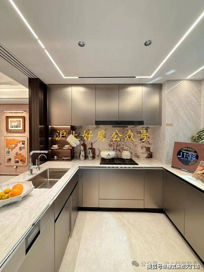 2、装标在线:开放式厨房配置嘉格纳三件套、铂浪高水槽及龙头也是标配,可谓是配置拉满!