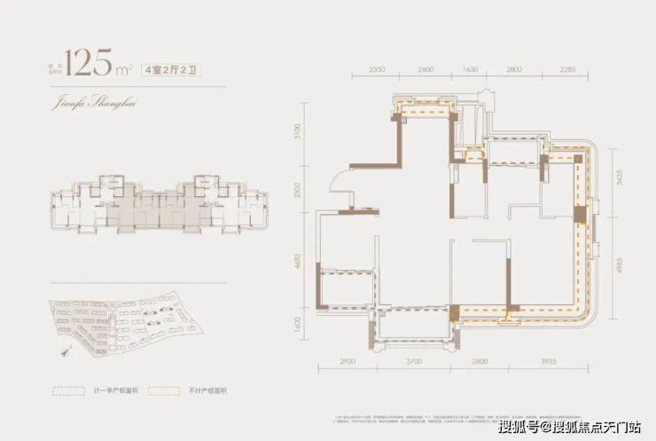 三批价建面约125㎡小高层225、230㎡别墅户型,完美符合这两条定义。