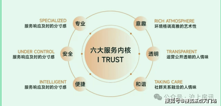 【保利虹桥和颂】全新作品,将品质服务品牌"亲情合院"深度融入日常生活,以"让家更暖"初心理念,围绕真、善、美、和四大维度,在社区落地呈现" I TRUST "六大服务体系,打造有生命的空间,有温情的社区,有质感的生活。