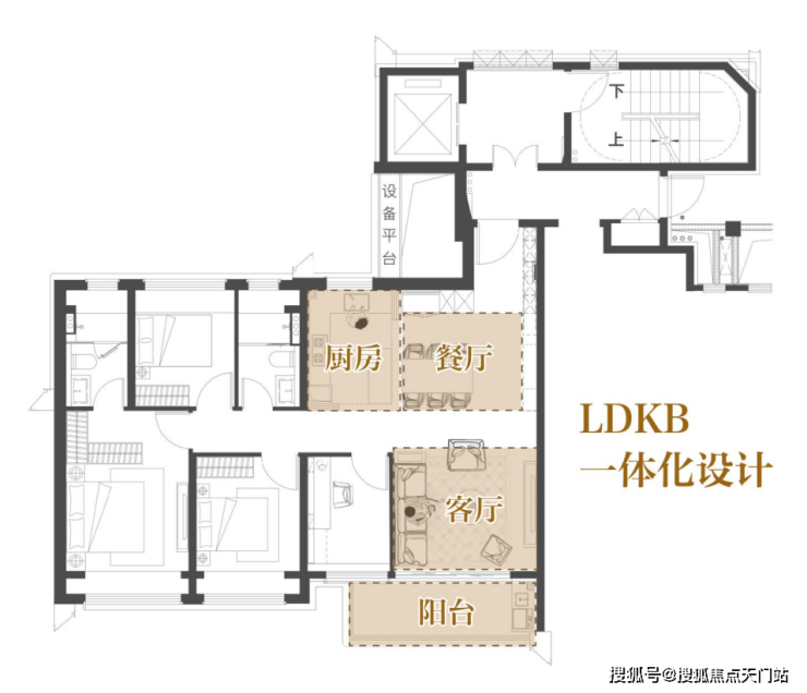 LDKB一体化的设计,将客餐厅、厨房融为一体,打破空间便捷的同时,尽可能地提升公区的空间使用率,尺度感超强,可轻松承载会客、家庭聚会、生日派对等场景。