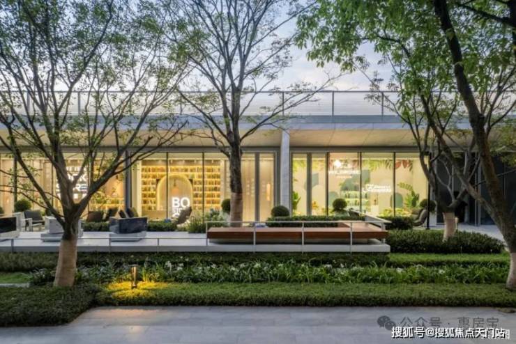 开敞式休闲景观区,则以“⽆界⾃然”为线索,临景互动区设置阶梯式观景台,让阳光清风、自然光然,俯拾皆是。