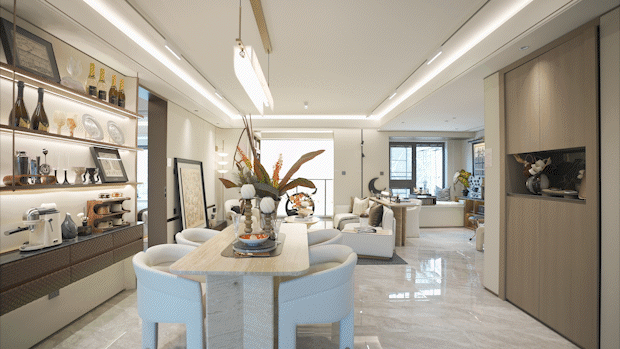 客餐厅一体化设计 ,整个公区视野开阔尺度阔绰,足以彰显业主的非凡气度。