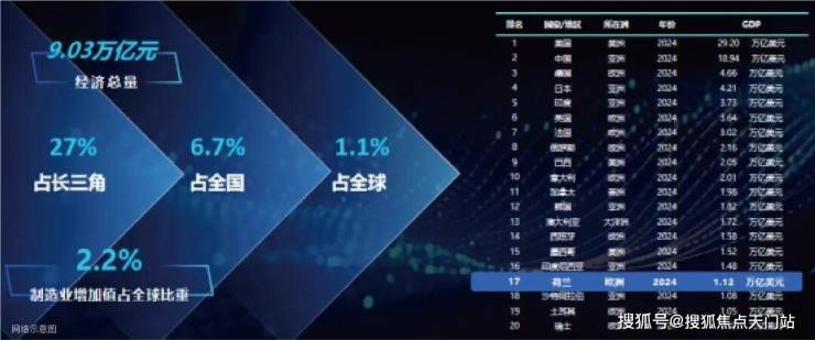 2024年,G60九城的GDP总量达到9万亿(1.27万亿美元) ,超过荷兰的经济总量,相当于全球各国经济总量排名的17位。