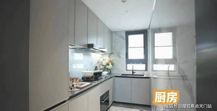 在保留南北通透、客餐厅一体化的同时,厨房空间迎来升级,U型大厨房不仅提供了更富裕的操作台面空间,也避免了烹饪过程中频繁转身移动传菜带来的不便。