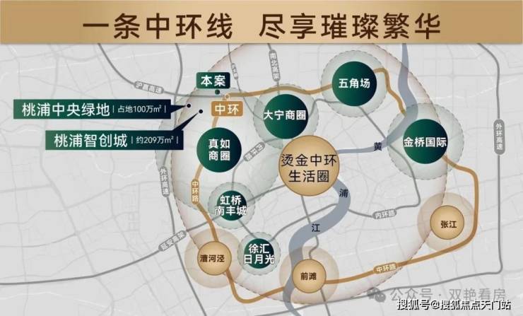 普陀区教育部门正根据桃浦的建设进度,按照对标上海一流、适度超前的原则,统筹加快推进高品质幼儿园和九年一贯制学校等高质量教育设施落地。 更重要的是,项目距离中环线直线仅约1.5km。