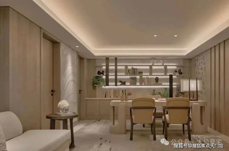 室内陈设遵循少即是多的东方禅意,手作陶器与当代雕塑在灰调中形成材质张力,让艺术装置成为空间的呼吸器官。