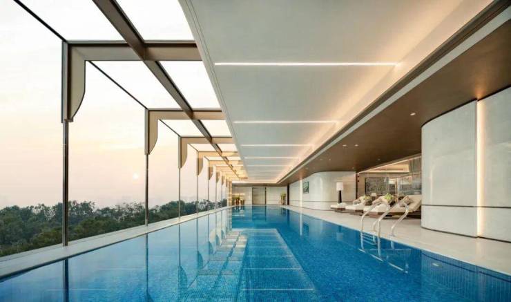 同时,商业3层精心配备室内泳池、健身房、瑜伽房等设施,凭借得天独厚的采光条件,与窗外绿意盎然的屋顶花园相互映衬,营造出舒适惬意的休闲氛围。