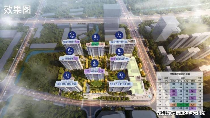 规划约有4种户型,103、107㎡的三房两厅两卫及123、129㎡的四房两厅两卫,共计550套住宅。