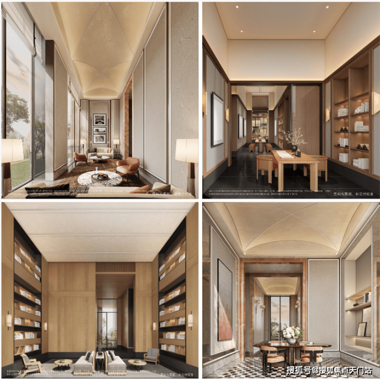 质感立面:采用石材+铝板组合,可视面均为古铜色金属铝板、米黄色铝板/石材,搭配边套270°大转角飘窗,从正面、侧面到背面,立面精致统一,颜值与质感双在线。