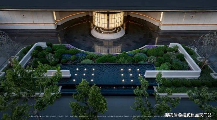 下沉式庭院,通过垂直景墙、悬浮观景台与叠水景观的立体交织,实现移步换景的视觉效果,也与会所空间形成无界交互。